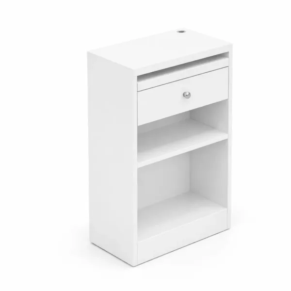 O Balcão Terminal em MDF Branco é uma peça de apoio para completar composições de mobiliário comercial com melhor acabamento e funcionalidade. Seu formato ajuda na organização do espaço e contribui para uma apresentação mais padronizada do ambiente.